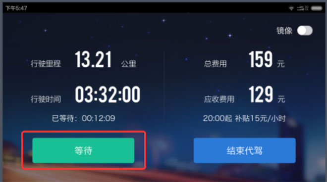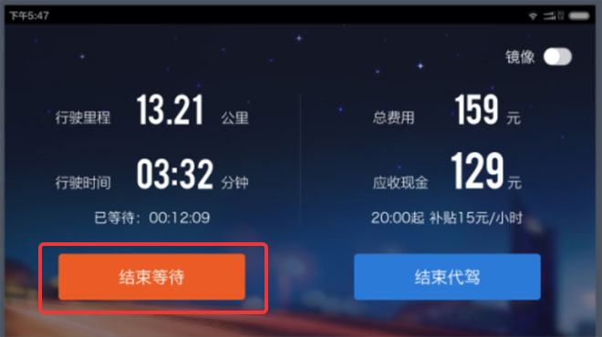 客户要求继续行驶时,点击“结束等待”,回到如下界面,继续行驶。
