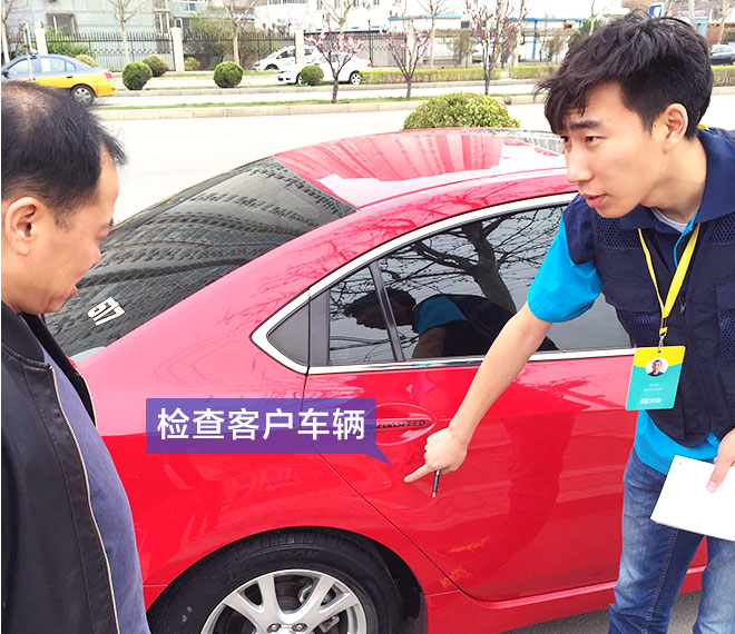 检查客户车辆,如有划痕,向客户指出。向客户询问目的地情况,与客户协商行进的线路。向客户提供行进线路的建议,征求客户同意,当客户有习惯线路时,以客户线路为准;上车后,系好安全带。